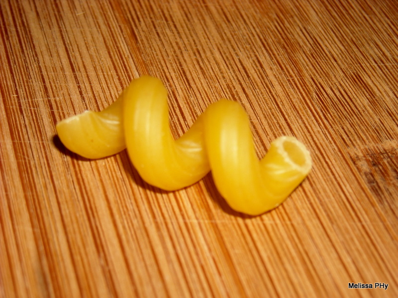 • Cooked short pasta–macaroni, farfalle, penne, etc. I used cellentani, which are long corkscrews with ridges so the sauce really sticks. Use about 3 cups cooked.