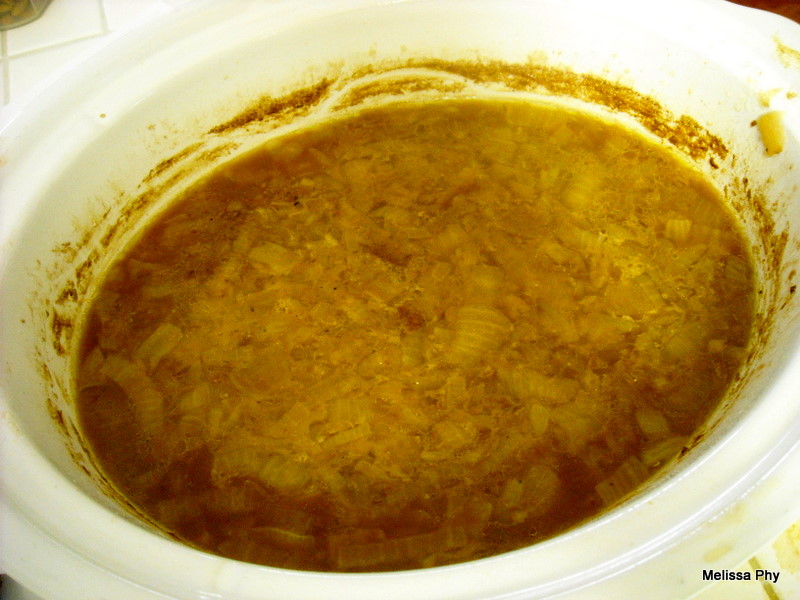 - Once the onions are done, add to the crockpot and turn heat to low. Let cook for 6 hours.