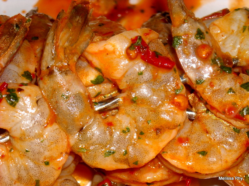 - Pour the marinade over a pound of shrimp that’s been deveined and peeled (tails on!) and marinade for about 2 hours.