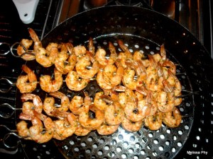 The mojo marinade comes from cooking cutie Tyler Florence. I used to make it in college a lot for chicken, but I decided to try it out on some shrimp on the BBQ since meat and I are frenemies right now. It is absolutely fantastic on shrimp. I highly recommend this recipe for the last days of summer, when the grill is still inviting.