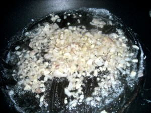- Melt the remaining 2 Tbsp. butter in a large saucepan. Once the butter foams, add the shallot and garlic and saute until softened–about 5 minutes.