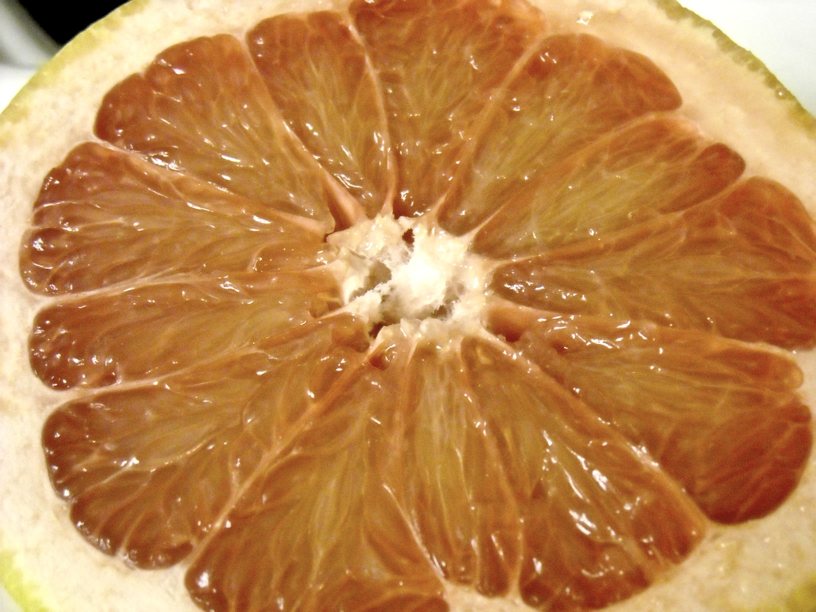- Then you slice it in half and cut the flesh all the way around the rim of the fruit and then cut the segments (like you’re going to be digging into one like you normally do.)