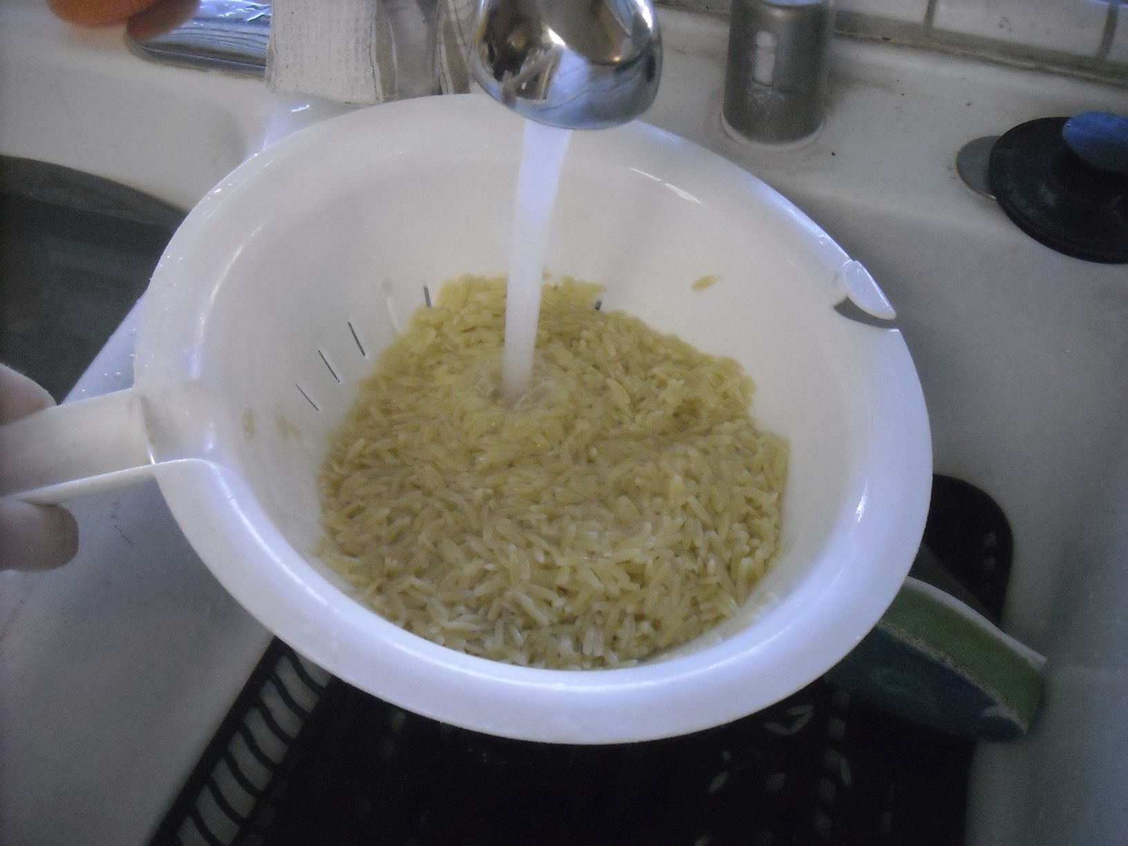 If you’re making a cold pasta salad, like yesterday’s Greek Orzo Salad, you should rinse the pasta with cold water. It gets rid of all the starchiness and makes for a tastier cold-pasta salad. Also, when you rinse it in cold water, it helps significantly cool down the pasta so you can make your cold-pasta salad faster.