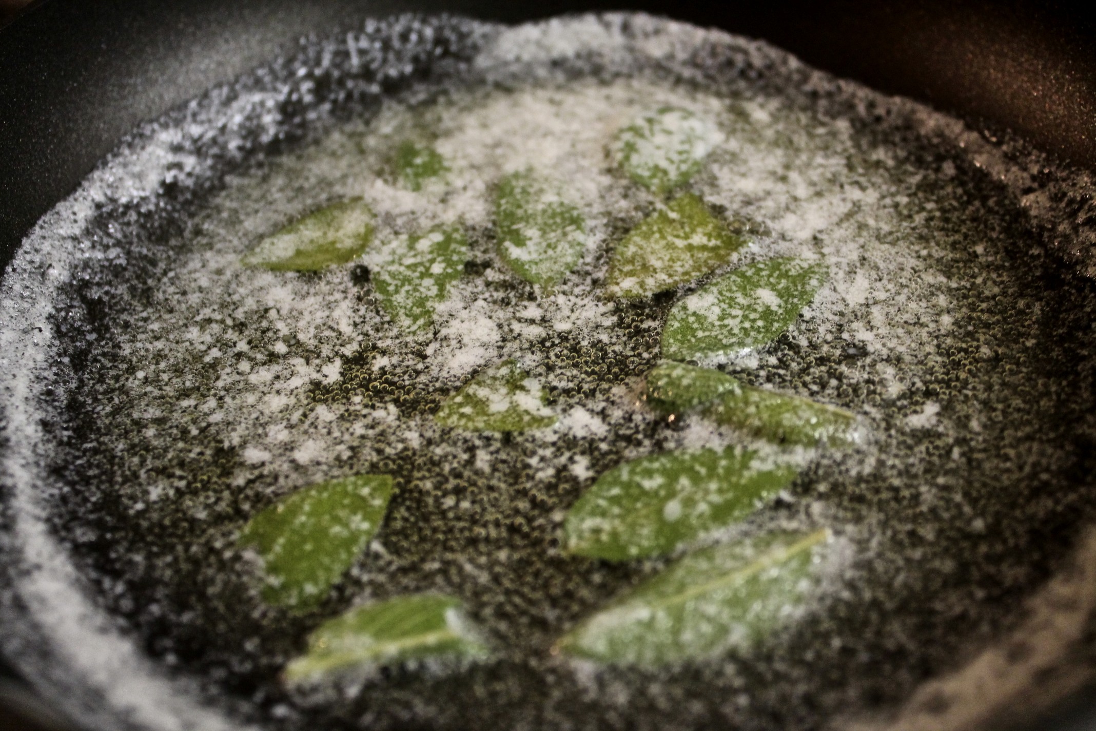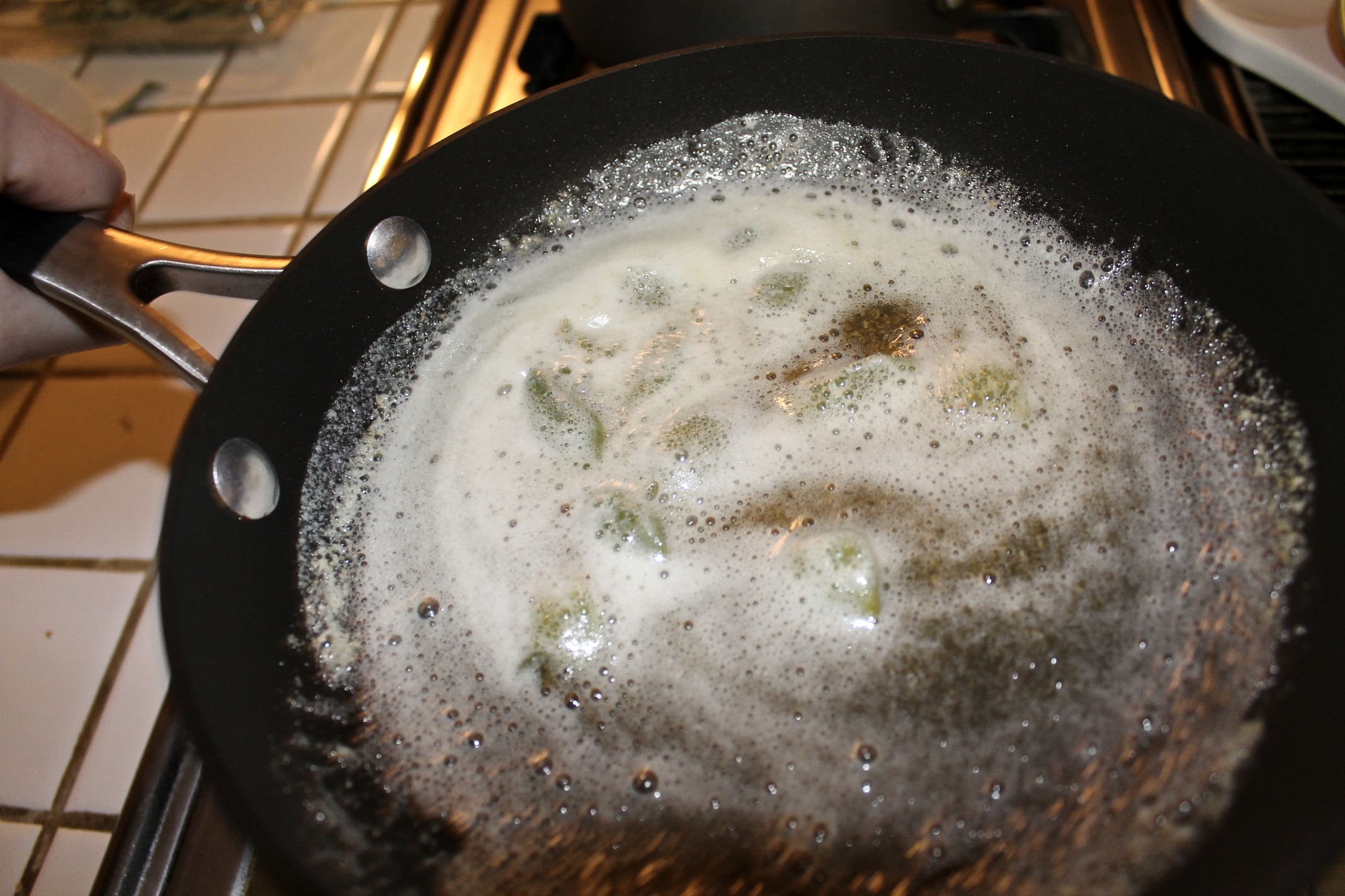 2. In a small pan, melt butter over low-medium heat, stirring occasionally. When it starts to froth, add the sage leaves.