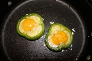 1. I wish I would have taken a picture to show you how ridiculous mine turned out! They tasted great, but I must have cut the peppers unevenly because the egg leaked out from the bottom. So the whole pan was covered with egg and a teeeeny bit stayed inside the pepper! I ended up using a spatula to scoop the egg up and put it right back in, but it ended up a little more scrambled than over easy. Apparently, I need more practice!
