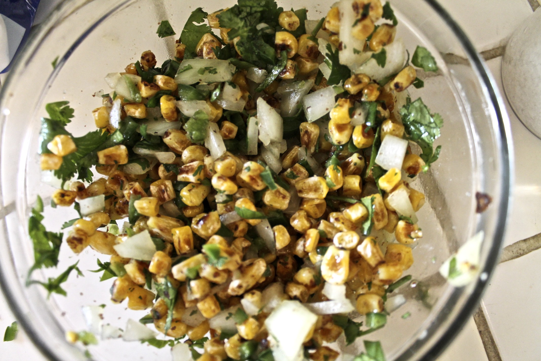 - Toss the roasted corn with the onion, cilantro and jalapeno. Season with the rest of the lemon juice, salt and pepper.