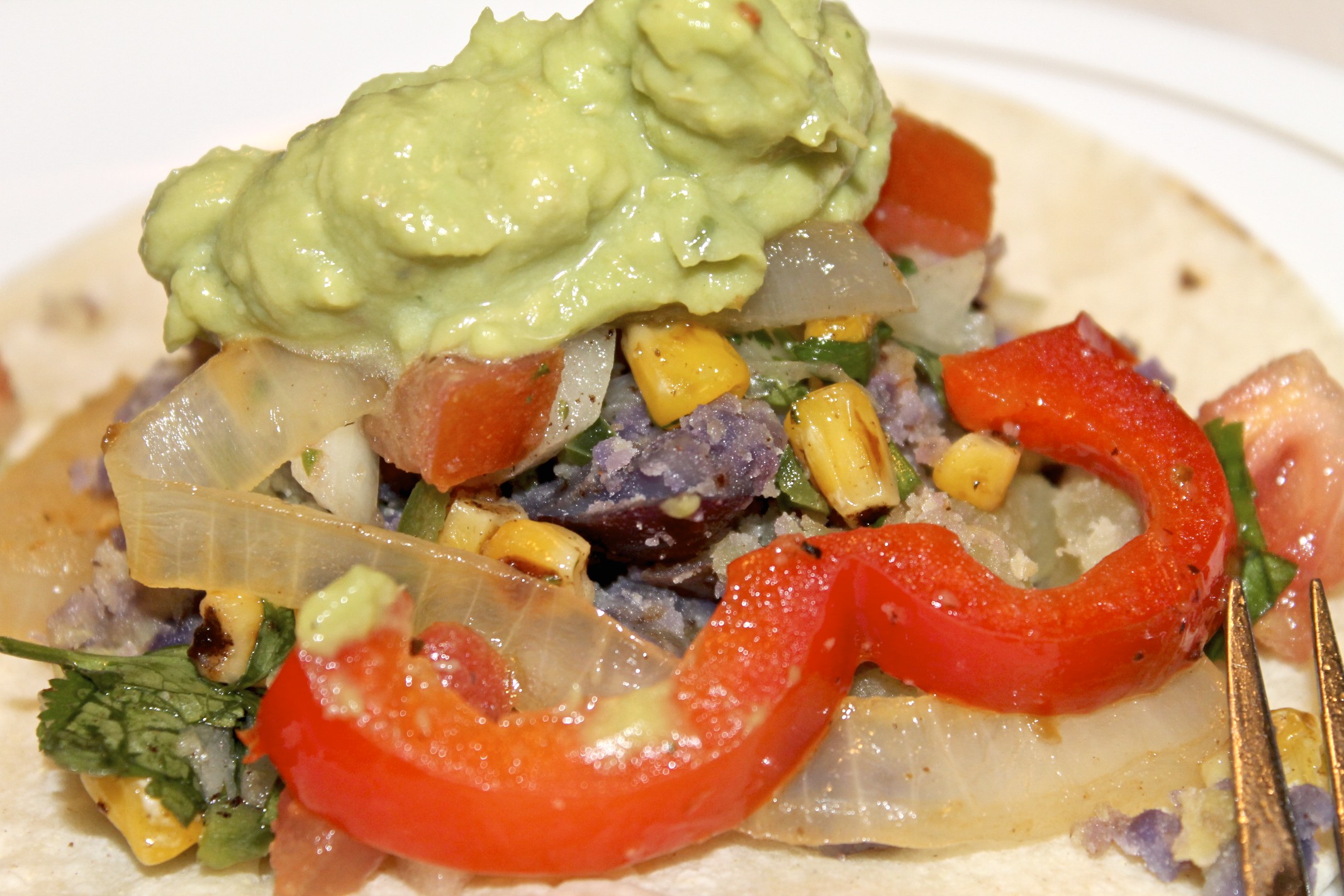 Delicious. We’ve got red, purple, green, yellow and white in these tacos. It’s like eating the rainbow, but without the chewy center and cavities that Skittles provide.