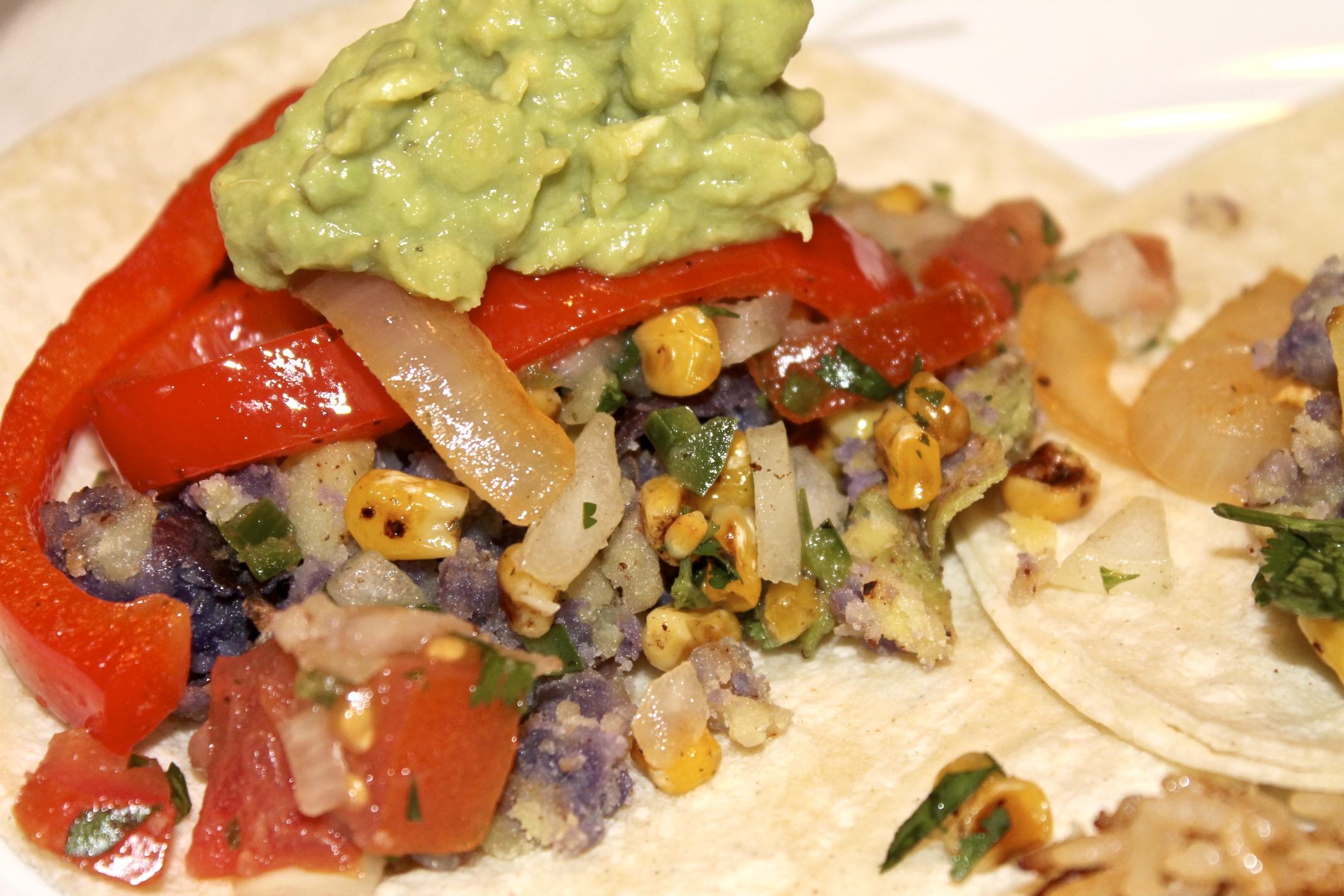 The great thing about these is they’re totally customizable. Serve them with whatever toppings and fixings your little vegetarian heart desires. I made a roasted corn salsa, pico de gallo, guacamole and sauteed onions and peppers. If you’re a dairy lover, you can add sour cream and cheese.