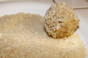 But I have no problem throwing that word around inside the post! So today I’m going to show you how to make risotto balls with your leftover risotto from Monday’s recipe. You know, if there is any.