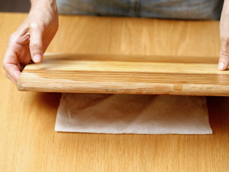 Well, when you’ve got a squirmy cutting board, make it stand still with a damp paper towel! Get the towel wet, wring it out, then place it on the counter with the cutting board on top. It will essentially stick the cutting board in place, leaving you with a stable cutting surface.
