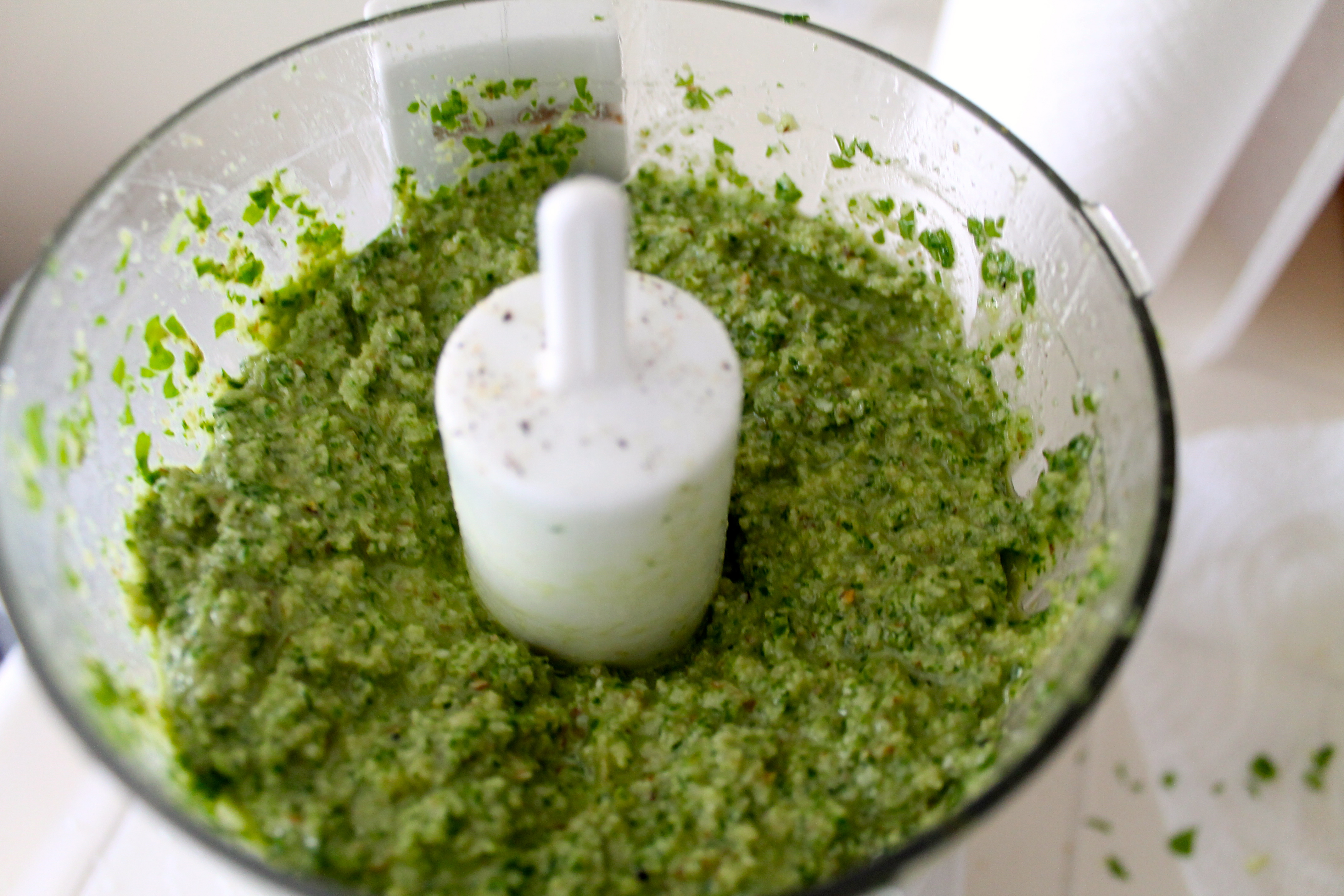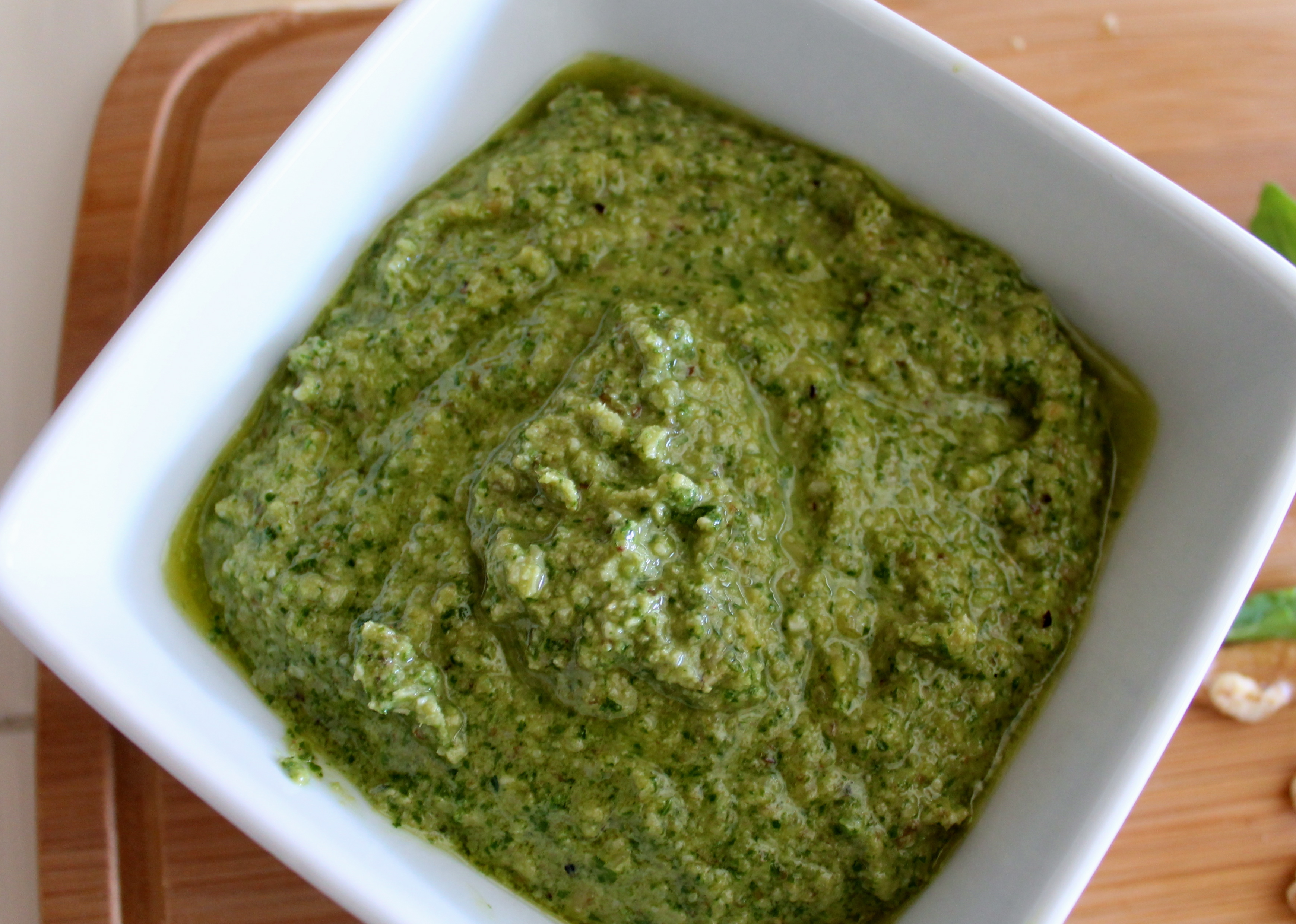 Normally, pesto is made with fresh basil leaves, toasted pine nuts, garlic and olive oil. But change was in the air.