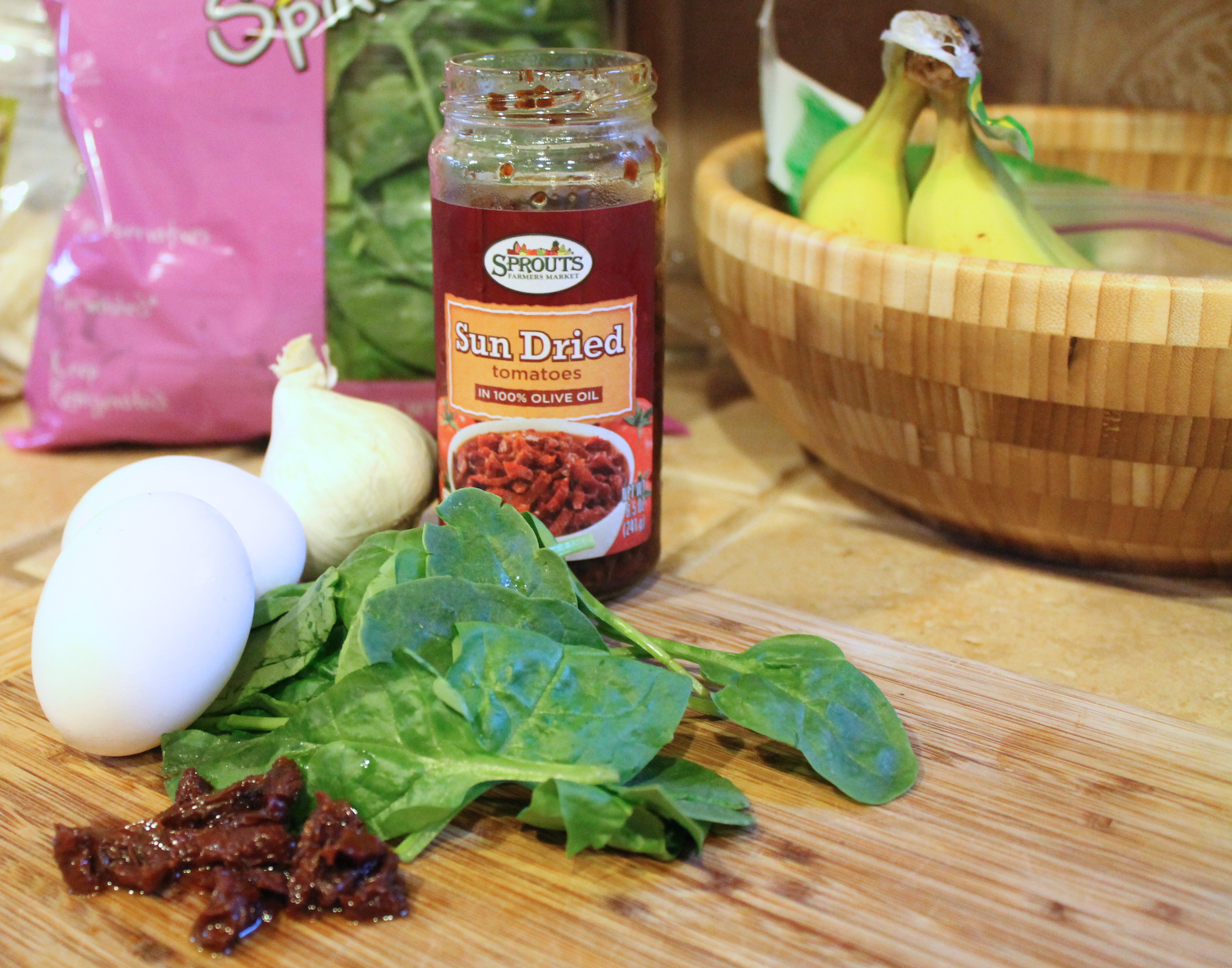These mini frittatas — or crustless quiches — are satisfying for lunch, dinner or pre-curser to a large meal. With frittatas, you can add anything in and they’d be delicious. I paired goat cheese with spinach and sun-dried tomatoes, sautéing the spinach with some garlic first to enhance the umami of the dish. Simple ingredients that don’t require much preparation.