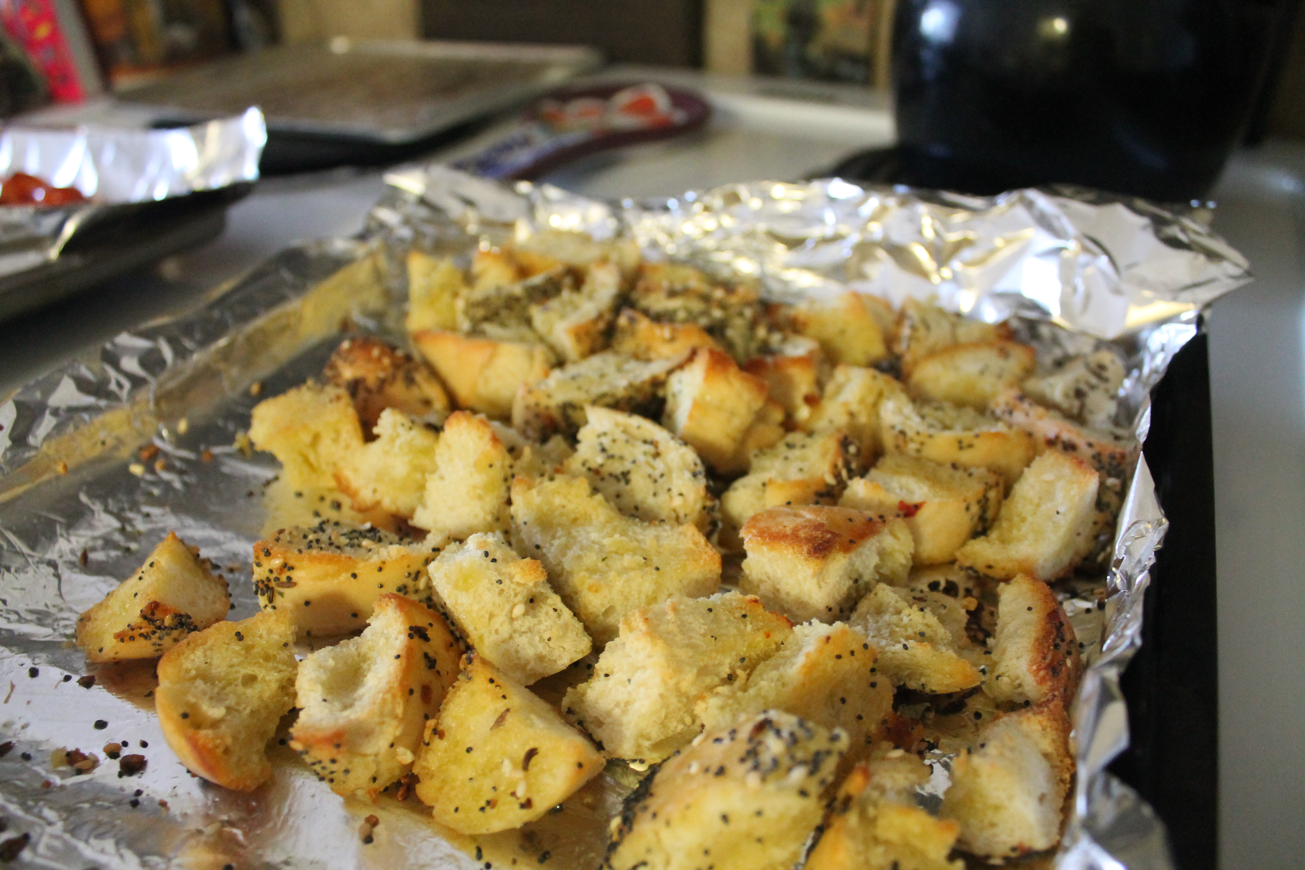 This recipe is from How Sweet It Is (perhaps the most beautiful blog in the foodie world) and it’s stellar. I switched it up by using an “everything” variation of french bread from my local grocery store (I’m sorry, bagels who?) and heirloom cherry tomatoes from trusty Trader Joe’s.