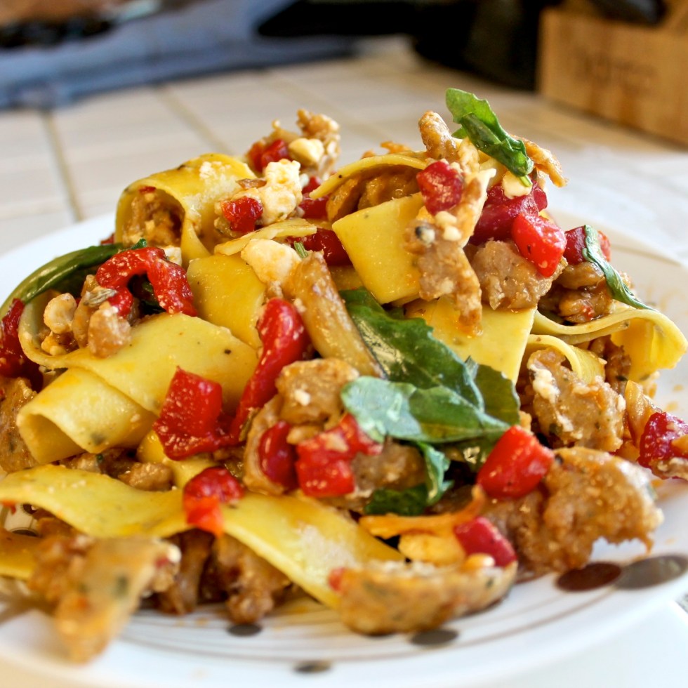 Free-for-All Friday: Lemon Pasta with Sausage, Roasted Red Pepper and Arugula